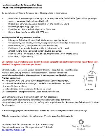 Bitte lesen Sie das vollständige Reglement vor jeder Börse genau durch: