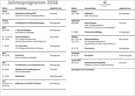 Das Jahresprogramm 2026 zum Ausdrucken